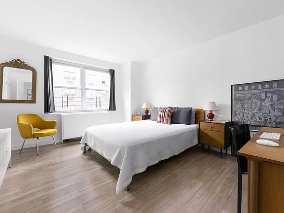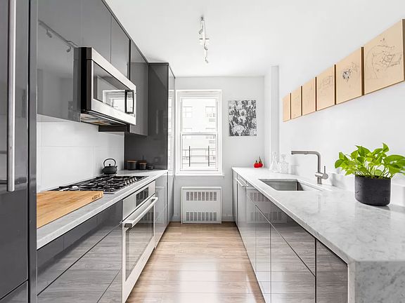 Chic modern design and abundant natural light combine in this impeccably renovated two-bedroom, one-and-a-half-bathroom Kips Bay co-op. A gracious foyer welcomes you inside this spacious contemporary showplace featuring wide-plank hardwood floors, tall ceilings and flawless art walls. Bright western exposures and city views provide a lovely backdrop in the large living/dining room. In the sleek windowed kitchen, gray lacquer cabinetry and Carrara marble waterfall countertops surround premium appliances by Bosch and Smeg. A built-in bookcase provides a beautiful divider between entertaining spaces and the master bedroom, where you'll find excellent closet space and an en suite powder room. The adjacent, extra-large full bathroom boasts large-format tile and Porcelanosa fixtures, and the home's split-bedroom layout places the second bedroom in the northwest corner. Recent renovations include new floors, upgraded insulation, new windows and updated plumbing. Multiple extra closets, built-in storage and central HVAC add comfort and convenience to this lovely Midtown East home. W/D permitted with board approval. The Crystal House is a full-service postwar cooperative where residents enjoy 24-hour doorman service, live-in superintendent, on-site parking garage, a bike room, storage, updated common areas and a wonderful roof deck surrounded by magnificent views. This Kips Bay home enjoys immediate proximity to NoMad, the Flatiron District, Chelsea, Midtown and Gramercy. Target, Kips Bay AMC theater, Trader Joe's and Fairway are just minutes away, and the stunning outdoor space of Madison Square Park and Union Square are close by. Transportation is excellent with 6, N/R/W and L trains within easy reach.