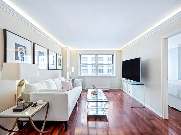 Thoughtfully designed by JMY Interiors, this turnkey home has been fully renovated with the utmost attention to detail. This one bedroom, one bathroom Gramercy/Kips Bay residence is designed to make the most of every square foot, with a layout that feels spacious and welcoming. With its refined finishes, central location, and thoughtfully arranged floor plan, Apt. 903 strikes the perfect balance between functionality and elegance. Custom large, mirrored closets are a standout feature as you enter this space, offering ample storage while also making the home feel spacious and bright. The kitchen features top-of-the-line Miele appliances, including a fridge and range, a Bertazzoni microwave, a Bosch dishwasher, and a handcrafted fireclay sink by Shaws, all of which have been selected for their superior quality and design. Under cabinet lighting helps with prep work and provides a modern touch. A breakfast bar connects the kitchen to the rest of the living space, offering the perfect spot for a quick meal or a casual get-together with friends. In the attached open living space, indirect lighting nested in the crown molding adds a warm and inviting ambience, cultivating the perfect environment to relax and unwind. West-facing windows allow natural light throughout the day, while dark wide-plank floors provide depth and contrast. The serene atmosphere and timeless design details continue into the bedroom. Two large custom closets provide more than enough storage space for all of your belongings, and lead the way into an exquisite all-marble bathroom that exudes sophistication and glamor. Meticulously crafted Kohler fixtures complement the marble and enhance the sense of luxury and pampering. The edges of the marble countertop and tiles are carefully polished to a smooth, seamless finish, while intricate patterns and designs in the hexagonal floor tiles add texture and visual interest. The Crystal House is a pet-friendly, full-service building that puts you right in the center of Gramercy Park, Kips Bay, Murray Hill, and Flatiron. With a 24-hour doorman, live-in super and full-time maintenance staff, you'll always have someone available to assist you with anything you need. Additional amenities include a bike room and storage. Shopping is a breeze with Trader Joe's, Whole Foods, and Fairway nearby. The building is also within a short distance of Grand Central, which now has LIRR access, as well as Union Square and Madison Square Park, which features a newly renovated dog park. With easy access to all the best dining, shopping, and entertainment options in the city, you'll love to make The Crystal House your home. Please note there is a monthly assessment of $366.67 through December 2024.