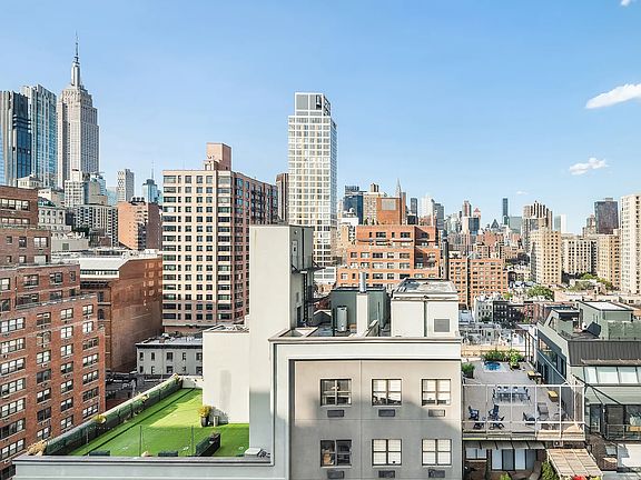 ROOF RIGHTS!!! Oversized floor through Penthouse Apartment, with triple exposures, Empire State Views and roof rights!! Introducing Penthouse 9 at 200 East 24th Street, a remarkable residence that captures the essence of city living at its finest. Offering three incredible exposures and boasting Empire State views, this penthouse is a true gem situated in the heart of Gramercy. Nestled in prime Gramercy, this oversized 1-bedroom, 1-bathroom apartment spans the full length of the floor, bathing in abundant natural light from unobstructed Southern, Northern (with stunning Empire State Building views), and Eastern exposures. Among the best 1-bedroom layouts in the building, this home has been meticulously renovated and cared for with a thoughtful touch. Step into the residence through an elegant entry foyer, leading you to a nearly 30-foot long oversized living and dining room space. The windowed kitchen has been seamlessly opened up to the living and dining area, creating a harmonious flow. Featuring counter seating and ample cabinet space, the kitchen is enhanced with modern white cabinetry, stainless steel appliances, and elegant granite countertops, making it a haven for cooking and entertaining. The spacious south-facing bedroom effortlessly accommodates a king-sized bed while providing room for additional storage and comfortable lounge seating. With a walk-in closet and an additional closet, storage is plentiful. The charm of this beautifully designed home is further accentuated by gorgeous hardwood floors, window built-ins, and crown molding. An exclusive opportunity for the shareholder of this unit is the option to purchase the roof space above, allowing for the creation of a private roof deck upon board approval, a unique feature that adds a layer of personalization to this exceptional penthouse. The Crystal House is a prestigious full-service co-op located in the heart of Gramercy, one of Manhattan's most coveted neighborhoods. Residents can indulge in a planted roof deck, a renovated lobby and hallways, a laundry room, available storage, a bike room, a 24-hour doorman, and a live-in resident manager. Positioned within a short distance from Union Square, Gramercy Park, Flatiron, and Madison Square Park, you'll have access to Trader Joe's, Fairway, Whole Foods, Equinox, Eataly, esteemed schools and universities, diverse dining options, and major subway lines (4, 5, 6, N, Q, R, W, and L). The building's flexibility permits co-purchases, guarantors, sublets, pets, and pied-a-terres, offering you a tailored living experience. Set in the desirable Gramercy Park neighborhood, enjoy the convenience of shopping at Morton Williams, Trader Joe's, Fairway, and Target, surrounded by a rich culinary scene and excellent public transportation. The Citibike station located across the street adds an extra layer of convenience. Embrace the perfect blend of city living and tranquil serenity with Penthouse 9. With its stunning views, exceptional layout, and convenient location, this penthouse offers a lifestyle that is truly extraordinary.