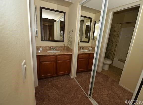 Hard to Find Lower Level 2 Bedroom Condo in Mission Grove! 1068 Sq/Ft, 2 Bedrooms, 2 Baths, Storage Closet, Brand New Carpet, Granite Kitchen Counters, Stained Maple Cabinets, Stove, Refrigerator, Microwave, Breakfast Counter & Nook. Each Bedroom has its Own Private Patio, Ceiling Fan, Both Bathrooms have Granite Counters, Mirrored Wardrobe Closet Doors, Tub and Shower. Carport is Right in Front of Unit and just across from Pool and Spa. "Mission Grove" is a Gated Community Walking Distance to Great Shopping and Amenities Include Pool, Spa, Sand Volleyball Court, BBQ and Gym. This Home is Turn-Key and ready for Move In!!.