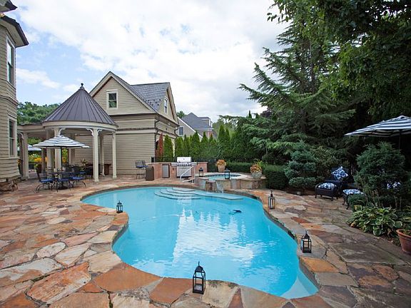 The largest twentieth century Allendale residence has been magnificently restored and expanded, extensively modernized from mechanicals, electric, plumbingand windows to custom woodworking and replicated stained glass windowsand pocket doors. 2007 renovations include, gourmet kitchenand breakfast room, sun room, theatre room, three story elevator, fabricated slate roof, gazebo... 2008 pool, hot tub, outdoor kitchen, stone patiosand water features. Five bedrooms (four ensuite) include expansive master suite. Landscaping is exquisite with English gardens. A superb tapestry of architectural splendor is woven with modern amenities, seamlessly blending elegance, essential comforts and lavish details with quality craftsmanship. Simply spectacular.