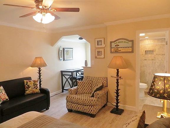 This unit is truly a must-see. Beachview is in the perfect location, across from The Hangout, public beaches, stores/shops and more! Updates and renovations have recently been made, to include new tile flooring throughout, brand-new spa-like bathroom, new kitchen cabinetry and countertops, beackfast area, flat screen t.v. and extra seating. All furnishings will convey. Great rental potential.Laundry room and vending machine on site!