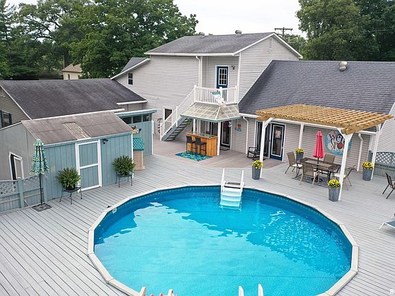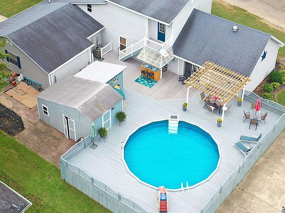 Looking for an escape right in your own back yard? This home has it! Privacy around this 24’ pool and complete 2 tier deck. Cute little pool house with restroom and nice sized pump house with heaps of storage. One of a kind 2300 square foot home with ornate touches throughout like custom wood flooring, spiral stairwell to huge 23’x21’ upper level master suite, large garden tub in main level bath with separate shower, storage EVERYWHERE including in the attic room, in the 2 car attached garage and in the 22’x21’ great room with cathedral ceilings. Concrete drive and concrete parking pad in rear. 200 amp hookup available for hot tub/jacuzzi. Corner lot with convenience to the city park and schools. This property has so much personality and special touches that pictures will not do the justice of an actual home tour, call for yours today!
