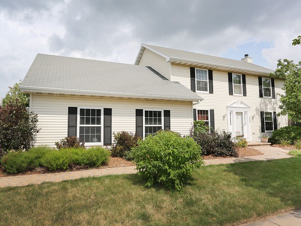 You will find quality throughout this grand 2 story home with a side entry garage. As you approach you will be delighted with the beautiful curb appeal and mature manicured landscaping. A large foyer greets you with a formal dining room featuring hardwood floors on one side and the expansive family room on the other. The large sunny family room is flanked with windows for an abundance of natural light, and features a brick faced gas fireplace. The eat-in kitchen is the hub of the home and is positioned at the back of the home. It is stocked with classic white cabinetry, and highlighted by wood floors. Patio doors from the dinette lead to the back patio and fully fenced yard. Tucked around the corner from the kitchen is a convenient half bath, and a first floor laundry! The upper level offers two large bedrooms with ample closets, a common bath, and an oversized master suite with whirlpool tub and walk in closet. Need more space? The lower level of this home is finished with a rec room, office, and a third full bath. Buy in confidence, this home offers a 1 year HMS home warranty!