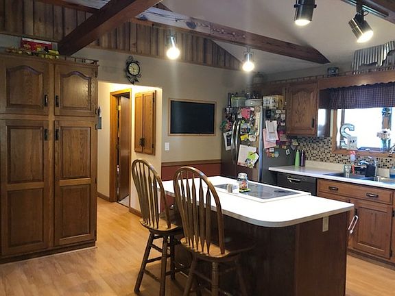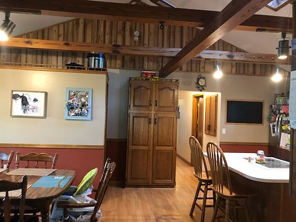 The beautiful kitchen is open to the dining room and features vaulted ceilings, Martins Custom Amish Cabinets, island counter and pantry. The living room has awesome natural light and a corn burner. The main floor master bedroom is huge and offers a great walk-in closet. The 3rd bedroom has a walk-in closet and a 3/4 bath. Main floor laundry. The basement offers a family room as well as a large storage room. This home sits on a large lot with a 25x31' pole building and a large chicken coop with ample storage. House has a water softener and iron filter. Attached garage has attic storage. 2011 roof, 6/19 new drain field, 2019 water heater.