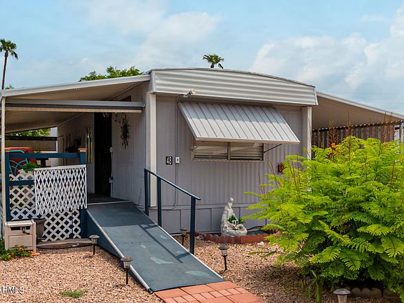 Lovingly updated 12 x 44 ft mobile home near Historic Old Town Chandler, just minutes to downtown with convenient access to shops, restaurants and casinos. Generous amenities in this 55+ park include heated saltwater pool, spa, clubhouse, billiards, shuffleboard, Bingo, and group activities. This move-in ready home sits on a corner lot at the end of the private street overlooking oleander shrubs that afford tons of privacy. Additional features include a covered patio, shed, workshop, private laundry, upgraded kitchen, and plenty of storage. Lot rent includes water, trash and sewer.