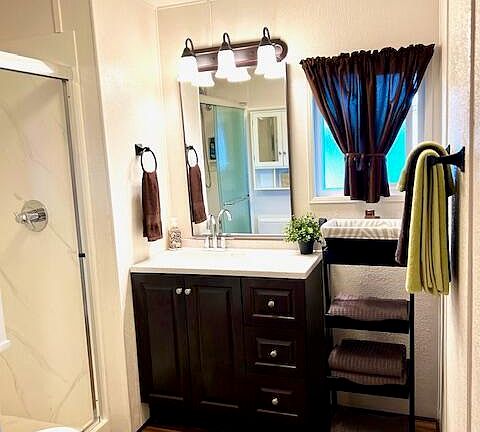 FULLY FURNISHED 2 BEDROOM 1 BATHROOM,BATHROOM JUST UPDATED W/NEW WALK IN SHOWER,VANITY AND LIGHTING,NEWER LAMINTE FLOORING AND CARPET IN LIVING ROOM AND BEDROOMS,WINDOWS ALL REPLACED IN 2020 AND WOOD FAUX BLINDS W/ WARRANTY,NEWER WASHER/DRYER SET,AC/HEATING/HOT WATER HEATER NEW IN 2021 W/WARRANTY,ROOF MAINTENANCED & ROLLED W/COATING IN 2023 W/WARRANTY,NEW FRONT ENTRY DECK,7 1/2X11 1/2 LIFETIME SHED,PRIVACY PANELS,TANDEM 2 CAR COVERED PARKING,HOME VERY CLEAN AND WELL MAINTAINED***LOT RENT $570.00***home is a quick drive to shops, restaurants and casinos. Generous amenities in this 55+ park include heated saltwater pool, spa, clubhouse, billiards, shuffleboard, Bingo, and group activities.