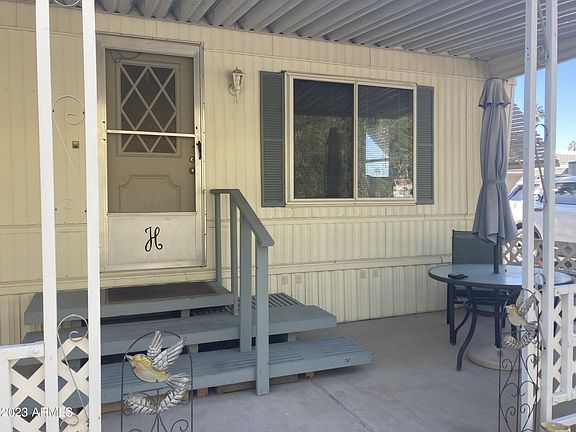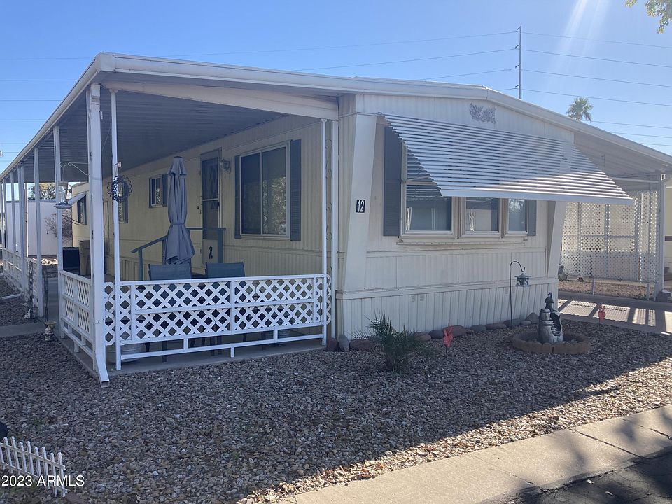 This beautifully furnished home is move-in ready! Get ready to enjoy your Arizona mornings and evening on this relaxing, private front porch; no neighbors to the north side of the home. Enter into the spacious living room, with an open floor plan connecting to the dining area and kitchen. Two bedrooms with a oversized hall bathroom that has a walk-in soaker tub/shower. This home has a lot of storage inside and out. Huge workshop at the end of the carport, with a 1/2 bath! The back door off the carport doors has stairs and a ramp for easy accessibility. Brand new carpet, the AC is only 3 years old, and the roof was resealed last year!! Double windows throughout! Newer refrigerator, stove and dishwasher; all appliance are staying! Come see this home near Historic Old Town Chandler today!