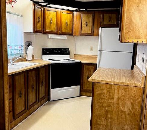 MOVE IN READY! This furnished home has it all! Enter into the spacious living room, with an open floor plan connecting to the dining area and kitchen. Split bedrooms provide privacy with a half bath in the second bedroom, soaking tub and walk-in shower in the master bath that also has NEW flooring! This home has plenty of storage including a storage shed The back door is off the carport and heads into the INSIDE laundry and kitchen areas. ALL appliances included! Enjoy the private, covered patio and Ornamental Orange Tree. This 14 x 60 ft home is a quick drive to shops, restaurants and casinos. Generous amenities are included in this 55+ park. Pool, shuffleboard, clubhouse and more! And ALL furnishings are included! Leased lot. Buyer to verify all. 55 and over only please!