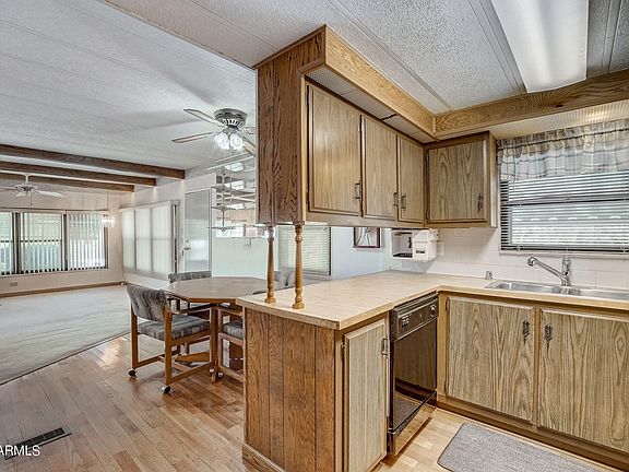 Welcome to a spacious and inviting 2-bedroom, 2-bathroom double wide manufactured home in the heart of Chandler, AZ's vibrant 55+ community. This residence comes partially furnished for your convenience. Nestled within a lovely park setting, residents enjoy exclusive access to a range of amenities, such as a community pool, relaxing spa, shuffleboard courts, and convenient on-site and in-unit laundry facilities.