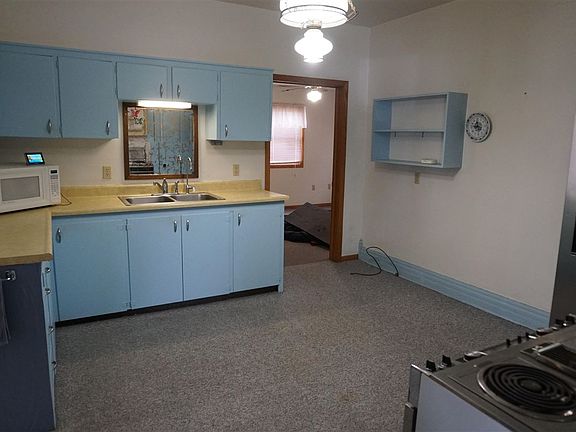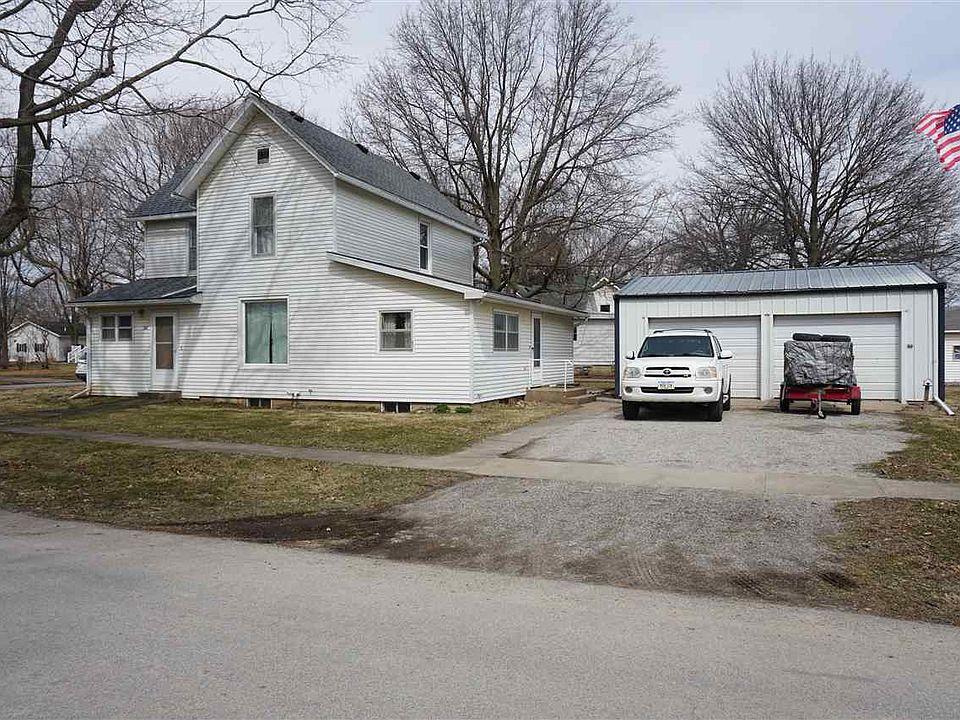 4 bedroom, 2 bath home on corner lot near K-12 schools. Entrance on east side opens to large room perfect for main floor family room. Kitchen has stove and new in Oct 22 refrigerator and can be eat-in or dining room is just off the kitchen. Spacious living room measures 14 X 20. Laundry is on the main floor in bathroom off primary bedroom. 3 bedrooms on 2nd floor have all been recently painted and measure 14 X 10, 14 X 10 and 13 X 10. Dry basement good for storage and has area for small workshop with cabinets and drawers. New roof in October 2022. Detached 24 X 27 garage built in 1979. Lots of space for your family! Located 1 block from newer Wellness Center with walking track, weights, fitness classes, pickleball and basketball gym.