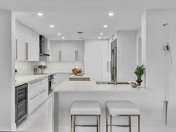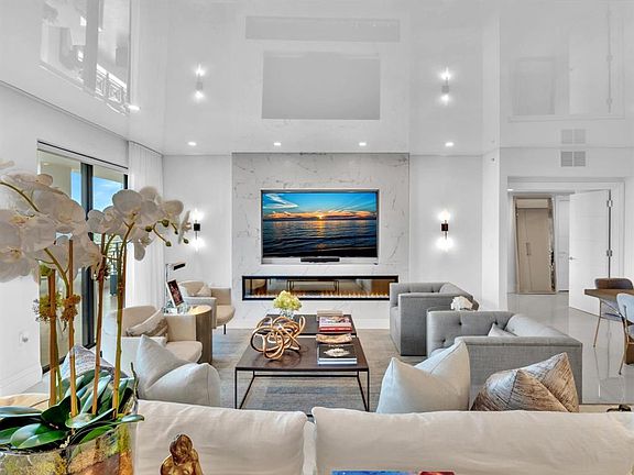 Walk through the double doors into the epitome of elegance-Unit has been recently remodeled in the best of taste- Kitchen features White high gloss cabinetry, stunning white countertops, Sub Zero refrigerator, and top of the line Stainless Steel Appliances and wine cooler-Luxurious White porcelain tile throughout -Split bedrooms Plus a Den With a tray ceiling and designer wall coverings-Breathtaking Electric Fireplace encased in porcelain accents the living room along with a Gorgeous stretch ceiling-Royal Primary Bathroom finishes with a King Size Shower and free standing bathtub-Designer light fixtures and wall coverings showcase this unit- Huge East facing balcony is like an extra room-Enjoy Coffee on the terrace and watch the sunrise ! NEW A/C !!