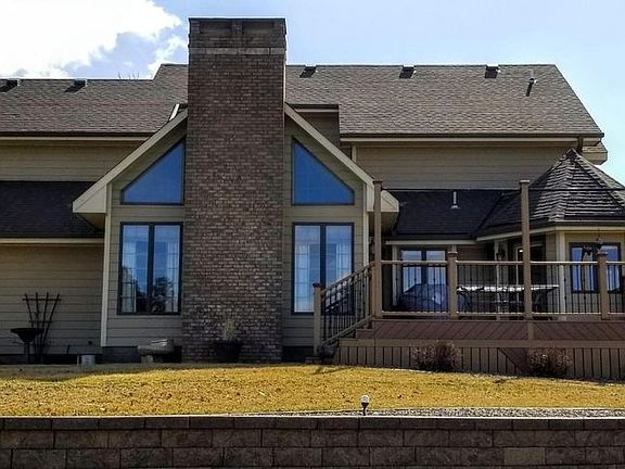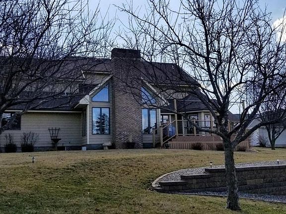 Our home is a custom built home with 4 BR and 5 bath areas. Located on a quiet cul-de-sac we are near I-80 access and the local golf course. We have continually upgraded the decor of the home. As you enter the front door you are in a two story foyer with gorgeous hardwood floors . Continuing down the hall we come to the great room with new carpet and a hardwood perimeter. The ceiling in the great room is high with beams, a door leading to the patio, a cozy fireplace and wet bar make this a really "great room" to entertain or just relax. The formal dining room with chair rail and coffered ceiling is large enough to seat 10 comfortably. It also has a window seat. The kitchen is large with cabinets that go to the ceiling, giving you an enormous amount of storage. It has a large pantry, quartz counters, under-counter lighting and new back splash. The dining area is an octagon space with tremendous views. Floors are done in a neutral ceramic tile. The half bath is near the kitchen and has a unique vanity made from a vintage sewing machine with a quartz counter. Quite the conversation piece. The laundry room features more storage and a deep sink. Also included is a tall cabinet for brooms, sweepers etc. It also has a laundry shoot from the bedroom above. The office is to the right of the front entry and has a pocket door so that it can be closed off. High ceilings, chair rail and french doors that lead to the master suite complete this room. The master bedroom and office have new carpet and the ensuite is tiled. The master bath also has a pocket door to close off the bathroom. A walk in closet, jetted tub and separate vanities make up this room. The shower and toilet are in a smaller room off this main bath. The bathroom has a sky light and it is a pleasant spacious room to get ready in. The upper level has 3 additional bedrooms all with walk in closets and either a full bath or a jack and jill bath. The lower level was finished about 6 years ago and has a large TV area. A kitchenette has lovely maple cabinets and a mini fridge and microwave. There is a dining area and also a half bath. The kitchenette and half bath all have ceramic tile floors. The mechanical room is separate and has a new water heater with instant hot water. There is a shelved storage area as you enter the lower level. It's a great place for all your seasonal decor or toys if you have children. Custom window treatments are shown throughout the house and are included. Take a look at the pictures and I'm sure you will love our house as we do. Thanks for looking. The remainder of the lower level is a huge storage room. This area could also be finished into a game room, pool table room etc. It is fitted with heat vents and electrical outlets. We have a deck off the kitchen which was replaced about 4 years ago with composite material. Maintenance free. We have an amazing view of the city and valley. The lawn is nicely landscaped and we recently installed an impressive retaining wall on the west side of the property that has steps leading to the lower yard level. A 3 car garage with openers is attached to the house. There is also an exterior door from the garage to the back yard. Call 712-343-6349 to arrange a showing. Call to ask about an incentive to buy a home in Avoca.