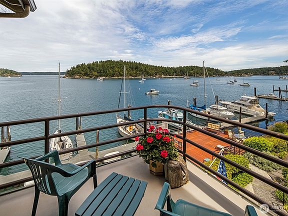 Penthouse condo with a private elevator with 180-degree views of the harbor, marina, and spectacular sunrises, two decks offer unobstructed views of wildlife and boating activities, as well as front-row seats for the 4th of July fireworks. A short  walk to the ferries and a few steps more to shop in the quaint town of Friday Harbor. Both bathrooms have heated floors. Furniture negotiable.  There is ample storage, including a loft area and one covered parking space. This one-of-a-kind condo has a private elevator. Chicago T&E #245469475