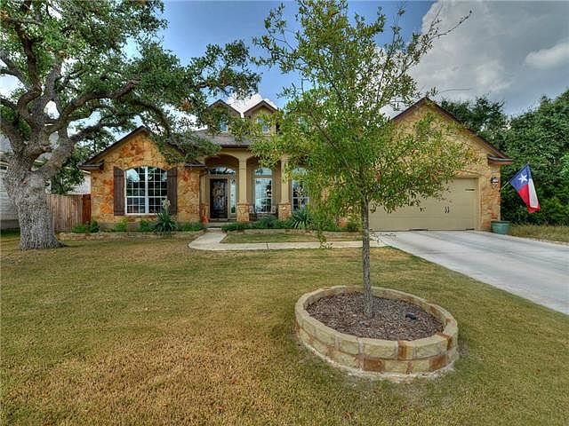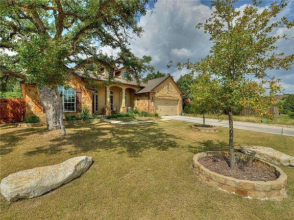 Gorgeous one story backing to Greenbelt!! So many upgrades in this lovely home. Beam ceilings in Family room and kitchen, stone fireplace, custom paint, wood floors, bay window in Master, extended stone patio and more. Great floor plan w/ 3 bed, 2 bath, study, formal dining, game room, three car garage. Located in gorgeous gated community w/world class amenities and top rated schools.