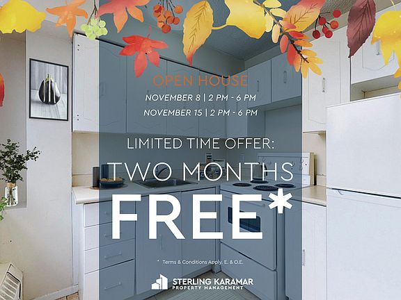 - Special offer! Limited Time Offer | 2 Months FREE on a 14 Months Lease!* - Limited Time Offer | 2 Months FREE on a 14 Months Lease!* *Pricing, availability, and incentives are subject to change. Conditions apply. Suite features may vary. Images and virtual tours may not reflect actual suite finishes. E. & O.E.