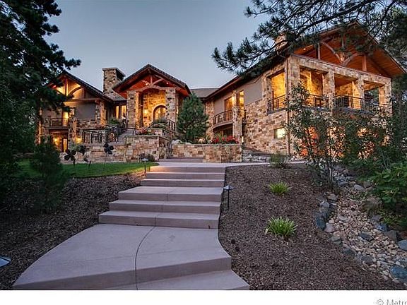 The heart and soul of this gorgeous home is situated on a beautiful acreage surrounded by a golf course and immaculate views. Nestled among a 240-year old, 38-inch diameter Ponderosa Pine, a tranquil and sanctuary waterfall and pond and majestic landscaping. Spectacular sunset views. Fine craftsmanship, customized details, and unique architecture all together on this exceptional home in Castle Pines.