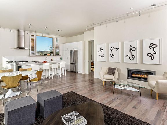 Move right in to my personal favorite: 3 bedroom corner ground floor Park Modern condo tucked in the trees. The view from the master bedroom is delicious and the Living room view is beautiful. Creature comforts and high end finishes are among the reasons our owners love their homes. All cabinets have premium soft closing hinges. We utilized stain and scratch resistant ColorQuartz counters to assure a lifetime of use. Our Omnia hardware is sleek, stylish and hardy. The Kentwood Maple hardwood floors are beautiful and have high performance standards. The Cosmo fireplace augments the ambiance of the living room and comes with hip reflective black glass liner and a graphite frame. Stainless Steel KitchenAid appliances make for a stunning kitchen. Call me for a personal tour.