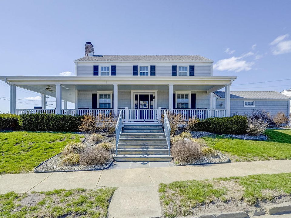 LAKEFRONT with OCEANVIEWS. Beautiful 3 bedroom 2 bathroom corner colonial just one block in desirable south end of town. Enjoy countless hours with friends & family on the wrap around mahogany porch. Features hardwood floors throughout, fireplace, french doors, attached garage and full basement. Updated kitchen with granite counter top and stainless steel appliances. Updates in the last 10 years include: Roof, Wrap around porch, central Air, bathrooms, driveway and water heater. Summer activities include live music at the gazebo, fireworks, parades, 5K race and more.