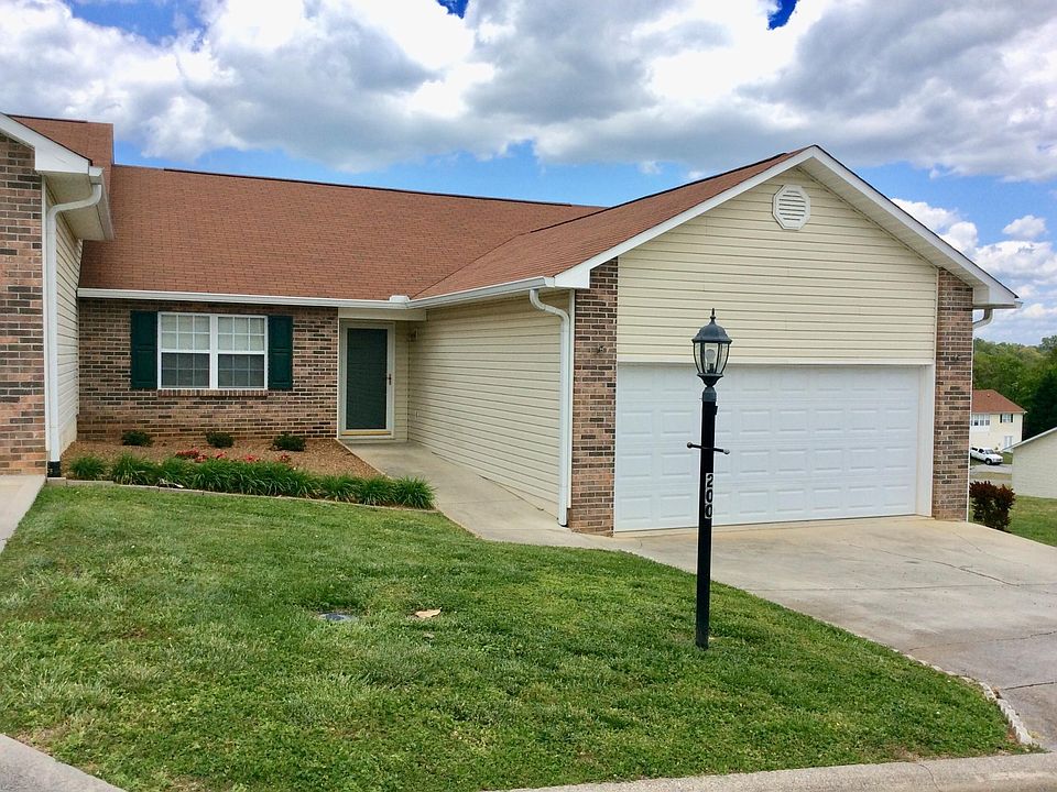 Immaculately maintained and recently updated, end-unit condo/PUD with approximately 1,111 SF of living space on the main level and a walkout basement with approximatley 725 SF of living space and 386 SF of unfinished space. This spacious home features an open floor plan with a cathedral ceiling with beautiful wooden beams and large window for lots of light in the family room, eat-in kitchen and breakfast bar, sunroom/office with lots of natural light, spacious master suite with walk-in closet, additional custom cabinets and master bath with walk-in shower, second spacious bedroom with nearby bathroom and 2-car garage with extra storage all on the main level. New paint throughout, new gas water heater, new dishwasher, newly installed neutral color carpet and new light fixtures in the bathrooms, and other updates. In addition, there is a full walkout basement with half bath, and space for a second family room/rec room/music room/study/workshop, or as best fits your needs and the unfinished space could be used as storage or finished for additional living space. A utility sink is located by basement door as well. Trane HVAC less than 6 years old. Located on a corner lot providing an additional grassy area to enjoy some outdoor recreation and additional parking nearby. Convenient to schools, shopping, restaurants, a few minutes to the interstate, and a very quick drive to Knoxville including Turkey Creek area. This home offers so much potential for use of space, so make sure to schedule a showing today! [Buyer to verify Square Footage]
