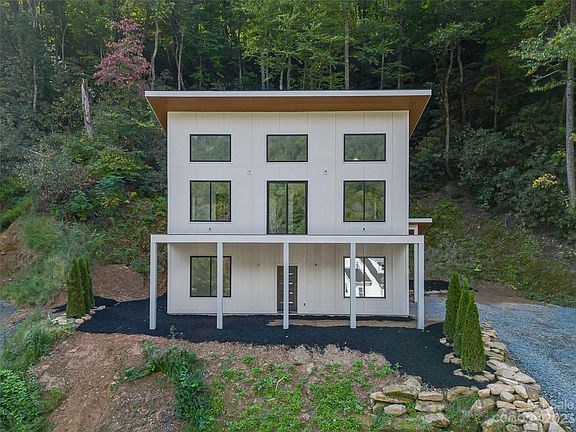 A stone's throw away from everything Lake Lure has to offer, this new construction modern home offers an elegant getaway. Backing up to Chimney Rock State Park, you'll have an 8000 acre back yard. Sleek lines and an abundance of windows capture the views of the Rocky Broad River and backdrop of the surrounding mountains. The upper level primary suite offers a private sanctuary with a spa-like ensuite bathroom and large walk-in closet. But the heart of the home will be your gourmet kitchen and gathering room, where soaring ceilings open to a full front deck. Step out and relax, while the sun paints the mountains in vibrant hues. Intentionally designed and installed, the electrical fields have been biometrically harmonized by Living Design Technology to promote a balanced energy. Early November completion! With a keypad controlled gate, your destination get-away is a perfect year round or lock and leave home.
