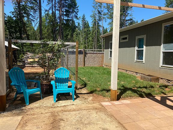 Pride and ownership shows in this newly developed 3.51 acres. This 2017 manufactured double wide home features 9 foot ceilings with crown molding, built in entertainment system, water resistant vinyl flooring, ADA shower, beautiful wood finishes with an open concept kitchen. The home is on a permanent foundation with tie downs and everything required by todays standards. In this mostly wooded neighborhood, the owners developed the impressive 8 unit 3' x 12' raised beds a beautiful mosaic flower garden and re-planted evergreens that all have and automatic drip sprinkler system. The property is surrounded by 6' to 8' fencing and has an area with hot wire for your pets or mini farm critters. A new well was drilled producing 7.5gpm and the owners built several out buildings and storage structures, all on a corner lot. Schedule your showing today to appreciate all the custom work from the properties own timber.