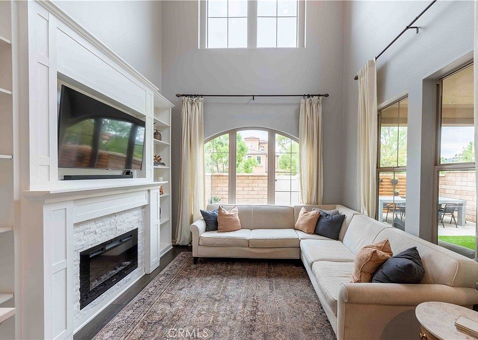 This meticulously maintained and spacious 2,000+ square foot home, located in the esteemed Baker Ranch Community, has breathtaking views of the foothills and sits on a corner lot with a spacious wrap around backyard, perfect for children and pets to play. This home is one of the few homes in the Rowe Courts Community with solar; with 19 panels installed, rising electricity costs will not be an issue with this home! Upon entry, you'll find beautiful luxury wood flooring and an upgraded kitchen with white cabinets, stainless steel appliances and an oversized kitchen island perfect for entertaining. The spacious and open concept leads you directly into the dining room from the kitchen and then into the great room with cathedral ceilings, complete with an abundance of natural light. The upgraded staircase includes the luxury hardwood on the landing and it will lead you to the second floor featuring a loft which could easily be converted to a fourth bedroom. The loft features the upgraded wood flooring as well as the hallway which leads to another bathroom, bedroom, laundry area and master suite. The master suite has a spacious walk-in closet and dual sinks in the bathroom with beautifully upgraded tile. The third floor features a third bedroom with a walk-in closet and a beautiful view of the foothills. This home also features upgraded built-in storage in the ceiling of the two car garage as well as a built-in storage shed in the backyard not to mention the newly purchased solar panels that covers heavy electrical usage. This spacious home is perfect for any growing family!