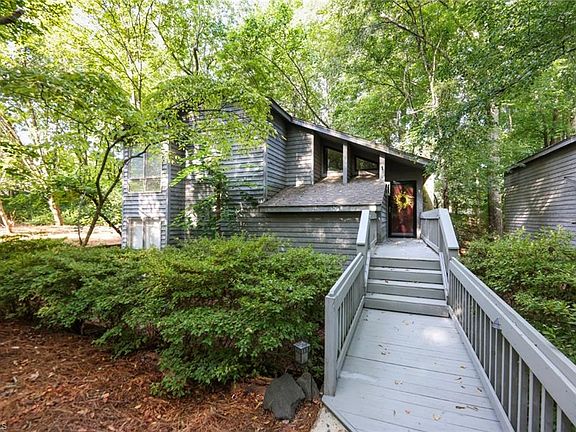 End Unit in popular Robinwood! Great floorplan & soaring living room ceiling provides light & airy feel inside while the wooded landscape creates a private oasis outside! 3 bedrooms & 2 full baths, Primary suite on lower level has terrific walk-in closet. Contemporary kitchen cabinets are accented by stainless steel & black appliances. Formal dining room features terrific built in shelves & cabinets, excellent for storage & display options. Multiple outdoor living options: open deck spans width of living room. Covered deck off kitchen is the perfect spot for the grill, or set it outside on the natural pathway to another seating area. 2 designated parking spaces. Recent updates! Freshly painted interior 2021! New sliding glass doors 2021! Newly painted decking 2021! Recent HVAC improvements: motor, circuit board & compressors. Incredible location with close proximity to local schools, restaurants, shopping, entertainment, parks, Wake Forest & Peace Haven/Polo/Robinhood Road area.