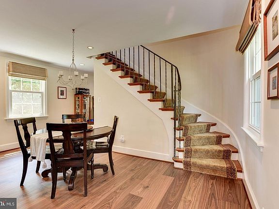 Stunning brick home just minutes to downtown Silver Spring highlights updates throughout and modern amenities paired with historic charm. As the former home of the designing architect this home offers additional space and features not found in similar floor plans, such as numerous built-ins and custom curved staircase. Delight in the inviting curb appeal and established landscaping, charming slate roof and copper gutters, fresh neutral color palette, new wide plank hardwood flooring, crown molding, renovated kitchen and baths, and light-filled windows with roman shades. Inspire your inner chef in the kitchen renovated with a modern style and appointed with stainless steel and lacquer cabinetry with undermount lights, granite counters, high end stainless steel appliances including a Wolf range, two sinks, beverage refrigerator, and center island with breakfast bar. The living and dining room combination is perfect for entertaining and everyday comfort complemented by a cozy wood burning fireplace flanked by built-ins. A family room or optional bedroom with two closets including a walk-in and a design inspired full bath with open shower and rain head conclude the main level. The primary bedroom suite is adorned with varied width hardwood flooring and a spa like en-suite bath with two closets, a soaking tub, and fossilized limestone open shower. An additional bedroom with sloped ceiling and built-ins conclude the upper level. The walkout lower level is host to a sizable fourth bedroom and recreation room with slate flooring, a powder room and a laundry room with abundant storage space. Enjoy summer nights on the patio in the fenced backyard with a storage shed and lush landscaping. Ample parking with space for four cars. Property Updates: interior paint on first floor, carpet on stairs, engineered hardwoods on first level, wine fridge, water heater, roman shades throughout first and second floor, sump pump and drain installed in basement, dishwasher, fenced in the yard, double hung replacement windows (6 windows are still original, 18 replaced), washer/dryer, and copper gutters across front of house.