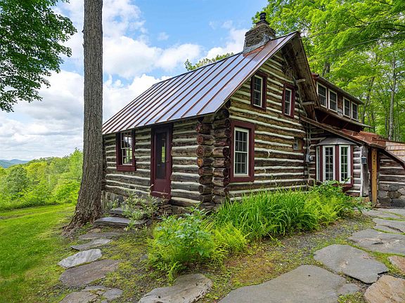 Situated on 12 private acres just 2.5 miles from Woodstock Village, this log cabin, known as KAB-IN on Airbnb, is magical from the moment you drive in the driveway. It is perched up on a ridge with spectacular long range views that can be enjoyed from the front deck or most rooms inside. The yard is open, with new stonework around the cabin entrance and there is a large stone fire pit encircled with Adirondack chairs off to the side. Inside, the charm is intoxicating as you are greeted by a mix of wood floors, log beams and railings, and a lovely wood spiral staircase to the 2nd floor. The living room has a floor to ceiling stone fireplace currently outfitted with a propane stove and there’s a wall of windows taking in the amazing views. The kitchen was completely updated with all new appliances, a new sink and a new soapstone countertop. Connected to the kitchen is a cozy seating area with a built-in stone bench. Beyond that is the dining room also with long range views and a door to the large deck outside. A full bath and mudroom round out the 1st floor. Upstairs is the main bedroom and a delightful loft overlooking the living room. Both rooms look out to the mountain views. The KAB-IN has a very strong rental history and is ideal as a second home getaway or primary residence. Located 1/2 a mile from the Woodstock town line, this is a must see property! Showings begin at Noon on 12/7/22. NO DRIVE-BYS.