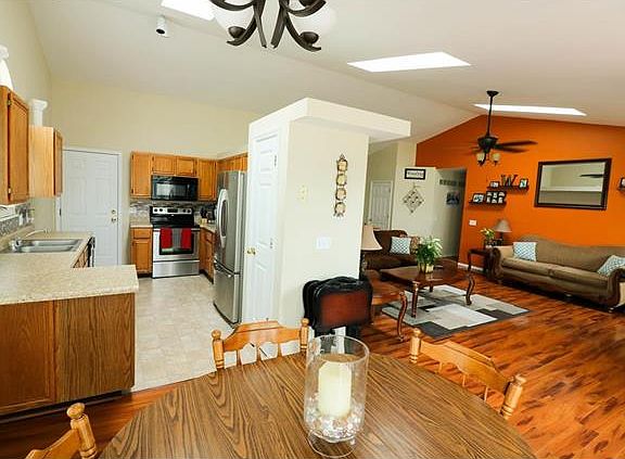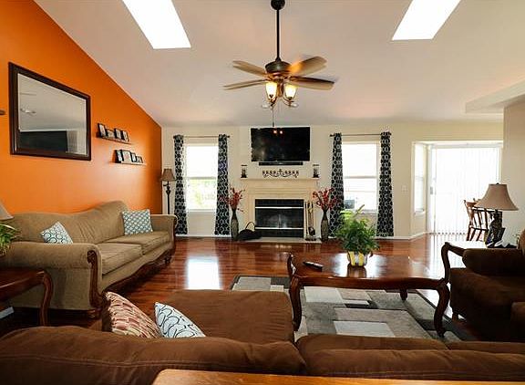 IMPRESSIVE RANCH! This beautiful 3 bedroom home W/ 2500 plus Sq. Ft living space has an excellent corner lot all newly landscaped. Beautiful wood floors on main level greet you with open floor plan, soaring vaulted ceilings, skylights, wood burning fireplace & plant shelves. Very nice Kitchen picture window, stainless steel appliances, upgraded counter tops and Back splash. Enjoy the cozy breakfast room with bay window. Large Master Bedroom suit with French doors, organized walk in closet with luxury bath w/ skylight along w/ separate tub and shower. Stunning feature of this home has a very large finished lower level with beautiful mill work, impressive wood floors with a nice pub like finish, excellent for entertaining the whole family. Beautiful backyard includes large deck overlooking the lake, custom patio with fire pit along with covered porch.