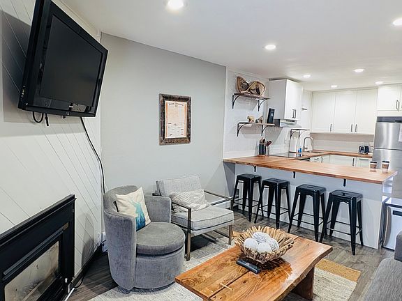 Modern 2 BD/1.5 BA condo just two blocks (3 in mins) away from the Main St. Fully renovated modern kitchen and appliances with open layout. This property is walking distance to some of the best restaurants, coffee shops, hiking trails and bus service to Copper and Breckenridge Ski Resorts. This top floor condo with full privacy is completely renovated with modern and open style kitchen, stainless steel appliances and features bar style seating open to the living room. The kitchen fully equipped with utensils, serving ware, pots and pans and everything you would need to make your stay memorable. The living space come with a cozy gas fireplace and a wall mounted TV. The living room couch opens into a memory foam mattress sleeper sofa (queen size). The private deck from the living room opens up to beautiful mountain views. There are two bedrooms the master bedroom comes with a tempur-pedic bed, a flat screen TV and an en suite half bathroom. In the second room, there is a queen size memory foam bed and a closet. The main bathroom has a tub/shower combo. All Utilities (gas, water, electricity, TV) are included. The unit has in built washer dryer. Long term rental is preferred. Open to short term rentals - rate will depend on the season. No smoking. Lease start date and term negotiable. One year preferred.