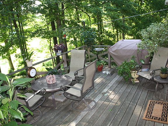 - EXTERIOR FEATURES: Wood Deck, Landscaped, Trees, Exterior Lights, Concrete Walks, Porch, Gravel Drive, Garden Space, Circular Drive
