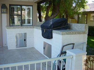 Enjoy the peaceful lake view from your extended, fenced and tiled patio with built-in BBQ and granite counters. This popular Abilene plan has been upgraded with granite countertops, newer Kitchen-Aid appliances,20 ceramic tile and plantation shutters throughout. The living room has fireplace, wet bar and track lighting. There is a separate dining and laundry room. Offered furnished per inventory list including the golf cart. Conveniently located on a quiet interior street near the clubhouse and