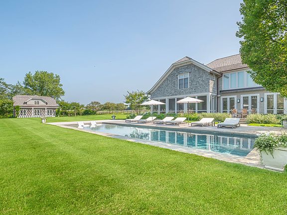 Chic, Newly Renovated Luxury Rental With Reserve Views[[Rental Registration # RP220354]] Located on the border of Bridgehampton and Water Mill, this stunning, newly renovated home is close to everything and is now available for August rental. Enjoy big sky vistas and forever views of farm reserve, polo grounds, and the Atlantic Golf Club. The fully-cleared two acre property features a like-new home with a 1,700 sq. ft. two story accessory structure with a kitchenette and full bath, and a 20 X 50 gunite heated pool. With fresh, chic furnishing, the home features a sun-drenched double height great room with floor to ceiling windows and striking stone fireplace. The over-sized screened-in porch opens to the living area and is the ultimate spot for dining and entertaining. The light-filled chef's kitchen has professional grade appliances and flows to the adjoining dining area. The first level also features a separate den/TV room. This gracious home boasts a total of six en-suite bedrooms, including a large primary suite with soak tub, four private guest rooms, and a separate one bedroom suite over the two car garage. Located only 2.4 miles from the center of Bridgehampton, this home is the perfect rental for the discerning client seeking a bucolic retreat close to all the Hamptons has to offer.