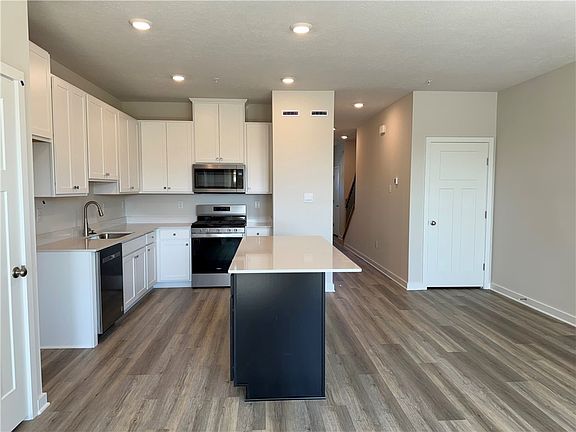 The main level boasts luxury vinyl plank flooring, providing both durability and style. The gourmet kitchen is a highlight, featuring sleek quartz countertops and top of the line stainless steel Whirlpool appliances. The open-concept design seamlessly connects the kitchen to the primary entertainment space, perfect for hosting gatherings.