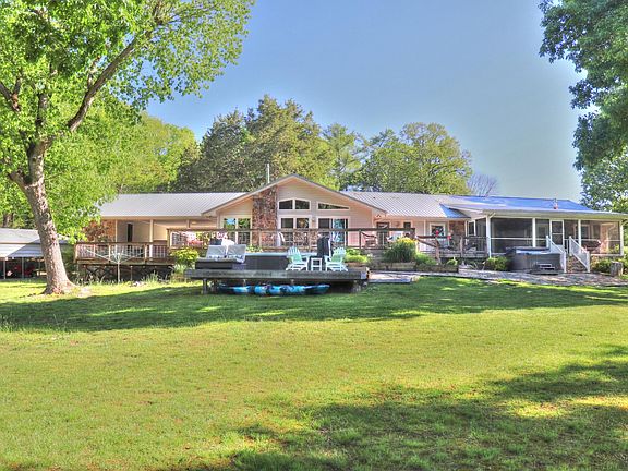 Gorgeous level peninsula lakefront lot w/boat ramp & TVA permitted double slip dock w/lifts-shoreline has sea wall. This exceptional one level home has been extensively renovated- The fabulous Kitchen is a chef's dream -Thermador 6 burner gas stove , dual oven, stainless steel range hood, wine cooler, granite countertops, island, prepping station, outside there are large decks & screened porch facing the lake, lap pool, hot tub, grilling station & She Shed. Home offers newer metal roof, vinyl siding, windows, flooring, interior doors, closet barn doors, lighting & updated baths. 2 free standing gas fireplaces and butler's kitchen. Updated baths. Lake Living at its finest! Unbranded Virtual tour in photo section or copy and paste https://youtu.be/HGLnMI55AN4