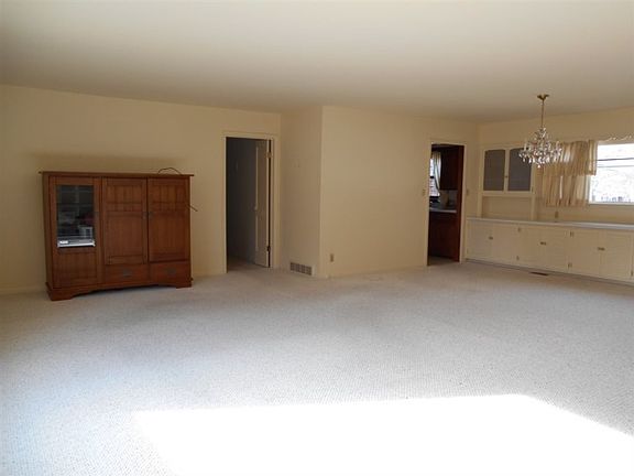 Over 1800 square feet of living space on main floor. Lovely brick home on corner lot of quiet eastside neighborhood. Big ticket items are new which include new roof in 2012, new furnace and a/c in 2013, and new water heater in 2014. Enter foyer and living room with open porch off of it. Kitchen has lots of cabinet space with built in combination cooking/dining island. Four chairs at island included. All kitchen appliances also included which would be 2 stoves, range, refrigerator, garbage disposal, dishwasher, and indoor charcoal grill built into island. The bedrooms have lots of storage shelves and cabinets plus two full bathrooms. Smallest bedroom in the back has built in shelves and drawers along one wall. Huge family room/dining room combo which is very open, bright and cheerful. Room measures 27 x 26 with 15 x 12 of that being the dining area and 16 x 14 being the family room area. Dining area has a buffet shelf with many built in cabinets. Basement under about 1/2 of house for additional storage or an added recreation room. Exterior features include open porch and shed for lawn tools and additional storage. Pool table in basement is included. Washer/dryer in kitchen, but there is also a hookup in basement. It is well kept and in good condition and in good location. A very nice Home!