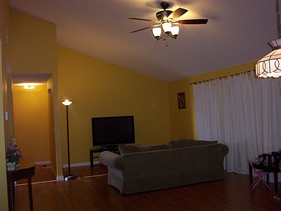 Entire home have been recently renovated with new paint, new laminate floor in living room and all bedrooms. Renovation cost of $20000.Every bedroom and Living room has ceiling fan. All new Whirpool appliances.Master bath and second bath have been updated with new tiled floor, new vanity, pedestal stand and cabinets. Outside, lawn and landscape have been well planted and trimmed. Architectural shingle roof only 2 1/2 years old.Big corner lot in nice and quiet neighborhood. Close to shopping, schools, beaches , I4 and much more. Must sell to relocate. Willing to negotiate, come see this home and make an offer.