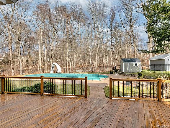 Pride of ownership is evident throughout this north Stratford Oronoque West subdivision home and grounds. This beautiful home offers a bright and open floor plan with many recent upgrades. Entertain, relax and enjoy care free days on the large deck and patio overlooking the wooded and private rear yard with a 18' by 37' heated Roman pool with built in benches and slide. Recent upgrades include roof, windows and heating. The family room with hardwood floors and fireplace offers unique barn door shutters with plantation shutters installed in the remainder of most rooms. A separate tub and shower and walk in closet complement the master bedroom suite and the unfinished dry basement has an additional 1,314 square feet that offers further expansion to this stunning home. Manicured park like grounds enhance the .84 acre outdoor space that also offers an irrigation system and shed. All public utilities add to its desirability. Walk to elementary and middle schools as well as Roosevelt Forest and Booth Park. Welcome Home.