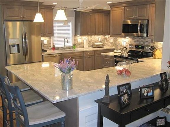 - Kit Dscrp: Main Level, Dining Area, Ceiling Fan(s), Countertops - Stone/Granite/Solid, Cabinets - Upgraded, Flooring - Stone/Ceramic Tile, Breakfast Bar / Nook, Stainless Steel Appliances, Open Floor Plan, Recessed Lighting, Countertops - Upgraded, Remodeled, Lighting - Pendant