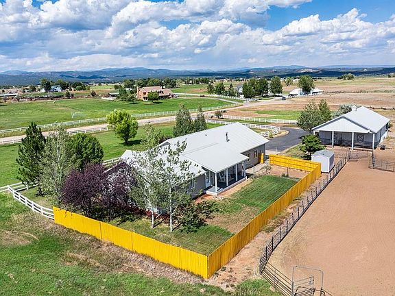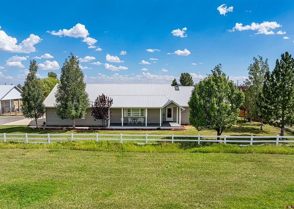 A true Durango horse property, these five irrigated acres host a single level home, 3+ car garage, corrals, stalls, riding arena, 35x60' barn, 2 car carport, and two sheds all just minutes from downtown. The ranch style home welcomes you inside to the spacious and open concept living space with vaulted ceilings. Adjoining the living room and two dining spaces, the kitchen is also easily accessible featuring ample quartz counter and cabinet space as well as new stainless steel appliances and dedicated pantry. A door to the fenced backyard makes for an easy outdoor dining option on the back deck in addition to the covered front patio for a morning coffee. Enjoy 360 degree views highlighting the La Platas to the northwest. The primary ensuite offers a jetted soaking tub and walk-in shower. Two more sizable bedrooms, another full bath, and laundry area complete the home. Plenty of parking, storage, and workspace including a utility sink can be found in the oversized three car garage as well as the 35x60' barn with a tack room and carport area. The horse amenities consist of a 35x60' barn with: two stalls, insulated tack room, electric, and frost free faucets; truck and trailer garage; corrals; and fenced pasture and riding arena. A 12x20' and 8x12' sheds provide extra equipment storage. The HOA fee includes trash, road maintenance, and snow removal so you can focus on your private country oasis. Located in a private cul-de-sac neighborhood with only seven more homes each situated on 5-10 acre horse property, this Southwest Colorado real estate is ready to accommodate all of your equestrian needs with room to grow.