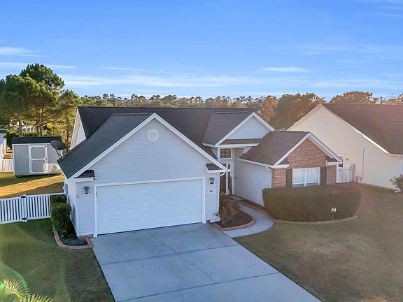 Quaint, country living meets affordable coastal oasis with this well-maintained home! Situated on a beautiful, well-manicured water lot within the peaceful Polo farms community with convenient access to Highways 22/31/9- You cannot go wrong with this one! It features 3 bedrooms and 2 baths (split bedroom plan), a laundry room, an attached 2 car garage, a fenced in yard, and a unique "she shed" (that could also serve as a man cave, playhouse, or detached storage- possibilities are endless!). This home has an abundance of natural light, soaring ceilings, beautiful laminate flooring throughout the main living areas, sparkling granite counters in the kitchen, and a master bath oasis. Some other unique features to note are: masted bath vanity/cabinet has pullout drawers, kitchen lower cabinets have pots/pans pullout, and kitchen upper cabinet has a pullout/expandable spice rack! You are tucked away, yet only about a 20-minute commute to the waters of the beautiful Atlantic Ocean! Shopping, dining, golf, and various other entertainment is also at your fingertips! This home is located within a 100% USDA eligible area for financing- speak with your lender for additional information! Make an appointment to see this darling home today!