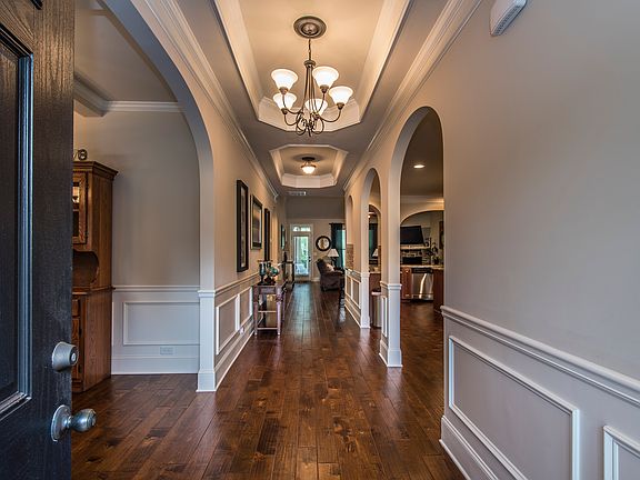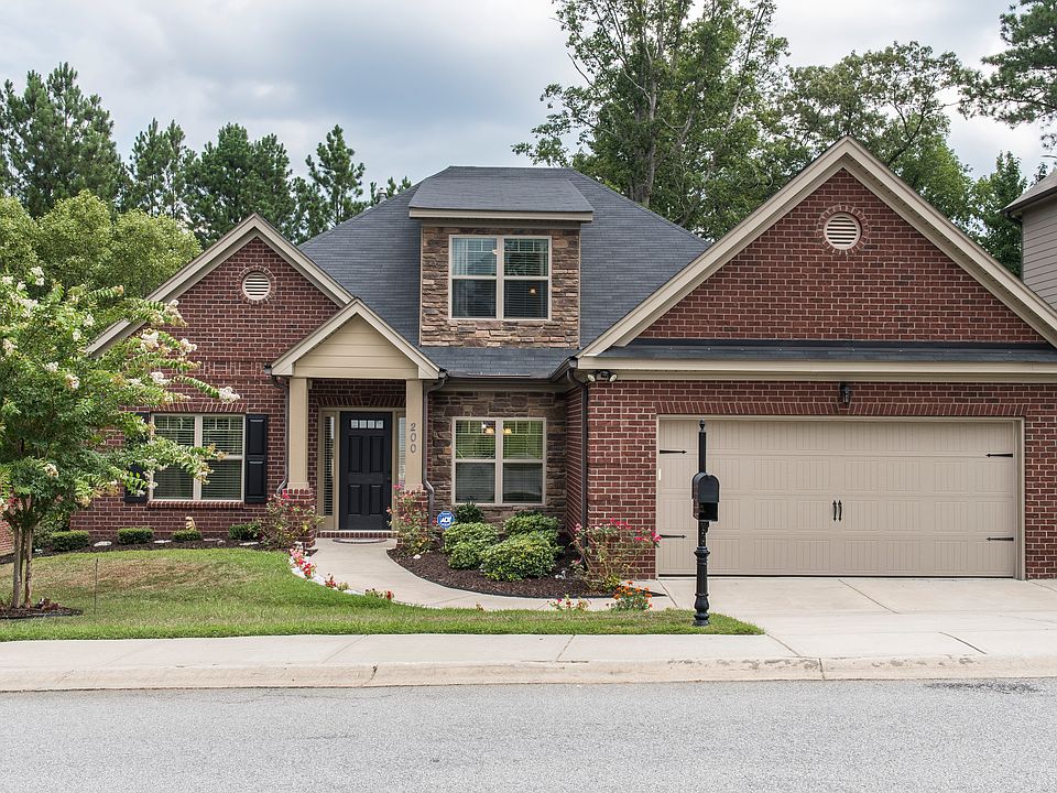 Absolutely gorgeous all brick home located in Lexington Heights in the heart of Lexington. This 4 bedroom, 3 bath 1.5 story home has tons of curb appeal and many extras. You will love the open floor plan with nice finishes and lovely touches of hardware, heavy crown molding, wide arched doorways, wainscotting, and hardwood floors on the main level . The gourmet kitchen that opens to great room is perfect for entertaining with granite countertops, breakfast bar, island, stainless steel appliances, tiled backsplash, double oven, large pantry, stained cabinets and roomy eat in breakfast area. The dining room has coffered ceilings and great room boasts vaulted ceilings, gas fireplace, beautiful stone mantle and hearth. The main level master suite has trey ceilings, separate large tiled shower, dual vanities, garden tub, his & her walk-in closets and big linen closet. Two additional bedrooms on the main floor that share a bath with double sinks. Laundry room with cabinets for storage. Upstairs there is a loft nook and 4th bedroom/bonus room with a private full bath and closet that can be teen/in-law suite/media room. Full gutters & leaf guards, sprinkler system, beautiful landscaping, private backyard that backs to woods and covered patio for relaxing. Freshly painted garage walls. This like new home will not disappoint! Convenient to Lake Murray, I-20, shopping, dining and restaurants. Great location and Lexington One schools.