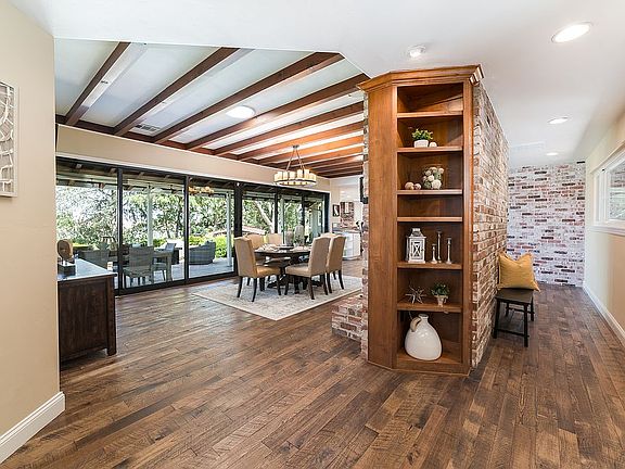 Situated above San Ramon Valley, this gorgeous original Henry Ranch home is situated behind a security gate at the end of a private lane. This stunning 1950’s rancher overlooks beautiful natural landscape while boasting breathtaking views of Mt. Diablo. On over two acres, this gated estate features an entertainer's dream backyard with a custom deck, hand placed paver walkways, sprawling lawns, a spacious patio and built-in outdoor kitchen/BBQ with granite counters. The brand new constructed theater room and entertainment venue includes custom wood siding, distressed hickory floors, HD theater projection screen and surround sound, as well as a kitchenette and full bathroom, perfect for entertaining guests! Stunning elements of this custom home include an exposed brick breezeway leading up to the front door, vaulted wood beam ceiling in the main living room and an exposed beam ceiling in the great room, Fleetwood sliding window system, designer lighting, gleaming hardwood floors and custom reclaimed wood millwork throughout. The desirable ranch style floor plan offers an impressive great room with an eye-catching floor to ceiling brick fireplace, open dining area, and a sliding glass wall system that provides panoramic views of the picturesque backyard while allowing tons of natural light into the house. The sliding glass wall system also allows you to completely open up the great room to the outdoor patio while transforming the space into indoor-outdoor living. The magnificently upgraded gourmet Chef’s kitchen features custom white cabinetry, a stunning farm sink, high-end stainless steel appliances, wine and beverage fridges, custom-designed reclaimed wood and brick wall walk-in pantry, and an oversized center island, truly a dream kitchen for any food connoisseur. This beautifully upgraded kitchen flows into the great room where you can cozy up by the grand fireplace while enjoying panoramic views of Mt. Diablo. Pampering is a priority in the tranquil master retreat boasting a calming fireplace, room for a relaxing chair or sofa, a large walk-in closet and french doors opening up to the scenic backyard. The spa-like ensuite offers a relaxing jetted tub, separate glass enclosed shower and separate vanity area. This home also offers an executive office and three secondary bedrooms generous in size, each with its own amazing view. The private guest house is perfect for extended family or can serve as an instant asset generating monthly rental income. The guest house, completely remodeled in 2019, features a spacious living room, full kitchen and bath, separate bedroom, and a new spacious deck with hillside views. The oversized three car garage offers epoxy floors, a home gym, an abundance of built-in cabinetry, a work space and even includes solar panels on the roof for energy efficiency. The sub-dividable 2.35 acre lot provides potential buyers with a variety of options: 1) Take advantage of this once in a lifetime San Ramon property and enjoy the abundance of privacy and tranquility that this unique property offers. 2) Convert to a family estate/compound by constructing additional housing structures on the property. Or 3) Embark on a much more extensive development project that might include a full lot subdivision and subsequent construction of several new estate homes with million dollar views! This beautifully upgraded home is close to award-winning schools, Las Trampas hiking, minutes to downtown, shops and restaurants. This is an amazing opportunity to live in a Henry Ranch original!