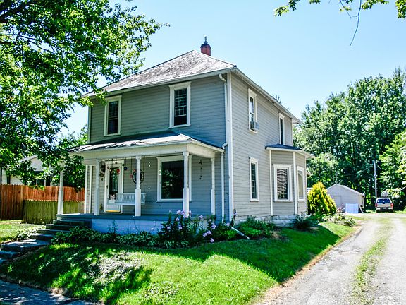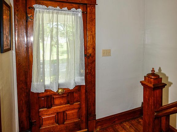 Great Home Full of Character with 6.5'x19.5' covered front porch, large rear deck with remote awning and an outbuilding with woods at back of property. Original hardwood floors, 8'' baseboard trim and 6 panel wooden doors throughout. 15'x29' great room allows for living and dining areas with pocket door to office/1st flr. bedroom, if desired. The appliances will stay in the tiled and granite kitchen with full bath located off kitchen and laundry/mud room with deck access. 4 bedrooms on the upper level. 4th Bd. has a large closet and could be a walk-in instead of a bedroom. Furnace new 2010, updated electric and replacement windows in the last 15 years.