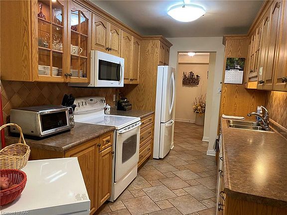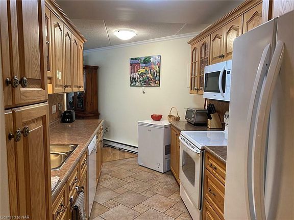 Central Fonthill Location. Spacious 2 bedroom, 2 bath Condo suite (1334 square ft) featuring same floor laundry + exclusive underground parking. Wall to wall windows that provide plenty of natural light + spectacular tree top views. This meticulously maintained unit doesn't just offer breathe taking views but the updated flooring, bathrooms and solid kitchen cabinetry is sure to impress. This popular Lookout Village condo complex sits on 7 acers of award winning grounds featuring new (2023) inground pool, natural gas BBQ stations, patios and picnic areas. Minutes to downtown Fonthill. This unit is awesome! you wont believe the value offered here for the price! This is a non smoking, no pet property.