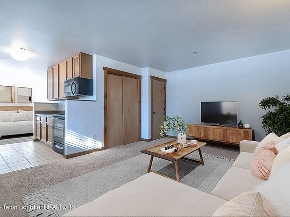 Fresh paint and new lighting... This charming, well-cared-for studio condo at The Ponds offers effortless living with a convenient ground-floor location just steps from parking. Inside, you'll find attractive granite countertops in both the kitchen and bathroom, adding a touch of quality and style. Ideally situated just north of Victor, the community provides easy access to Driggs and Jackson Hole, putting year-round recreation, dining, and amenities within reach. HOA-managed landscaping, snow removal, and common area maintenance, with fees that also include trash, irrigation, sewer, and water. Whether you're looking for a low-maintenance primary residence, a weekend getaway, or a short-term rental opportunity, this mountain retreat delivers comfort, convenience, and excellent potential