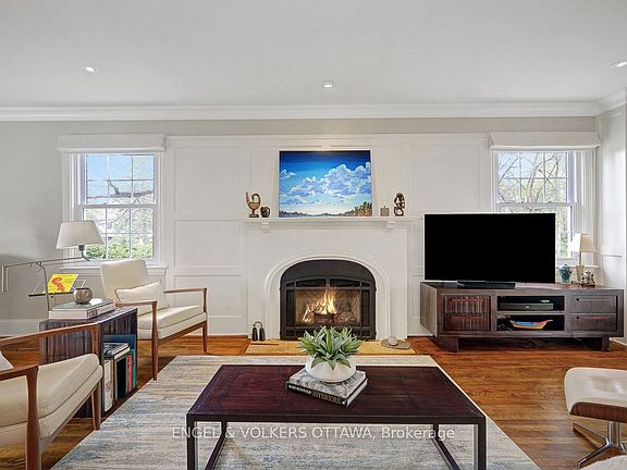 This beautifully renovated 4-bedroom house in sought-after Rockcliffe Park, is just steps from Ottawa's top schools. The bright main floor features a comfortable living room with gas fireplace, dining room open to a dream kitchen with an Aga range and generous island, plus a convenient mudroom/pantry entrance from the carport. Delightful sunroom leads to the deck and garden beyond. Upstairs, the spacious primary bedroom includes a full 4-piece ensuite with extensive built-in storage, while three additional bedrooms and a family bathroom complete the second floor. The primary and one other bedroom enjoy access to the upper deck. The finished lower level offers a large recreation room, versatile family room with fireplace and Murphy bed for guests, laundry facilities, 3-piece bathroom, and good storage. The property includes a covered carport with EV charger, additional driveway parking, fenced garden, and recently landscaped front garden with irrigation system. Generous storage is available in the attic and under the sunroom from the garden. This impeccably maintained house offers easy family living in one of Ottawa's most desirable neighbourhoods. Deck photos have been virtually staged.