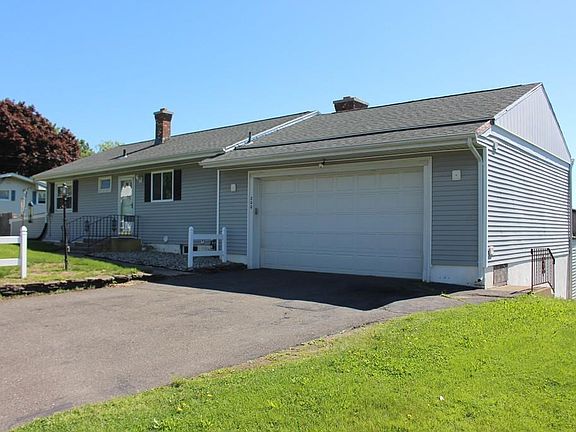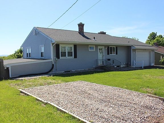 VIEW that will take your breath away! Flexible/Versatile Floor Plan! Move-in ready home offers a retro kitchen, sm rolling island, & a high counter/bar you can tuck some stools under - open & overlooking huge dining area w/phenomenal views of the city! You'll be spending most of your time on the oversized deck entertaining your guests all summer! Currently being used as a dining area, but could easily be a cozy livingrm! Stay warm with the fam next to the brick fireplace in the cooler months/save on your winter bill$! Remodeled neutral bathroom! Large master bdrm & 2nd bedrm boast hardwds & some spacious closets/Built-ins! Down the stairs is currently being used as an oversized living rm/man cave, but its possibilities are endless! Ceramic tiled floors! Wood stove! 1/2 Bath! Large Laundry Area! OVERSIZED TWO CAR GARAGE! NEWER Vinyl Siding! NEWER Roof! LUSH LAWN! ATTACHED SHED! Covered Patio area! C/Vac! Too Much To Mention!